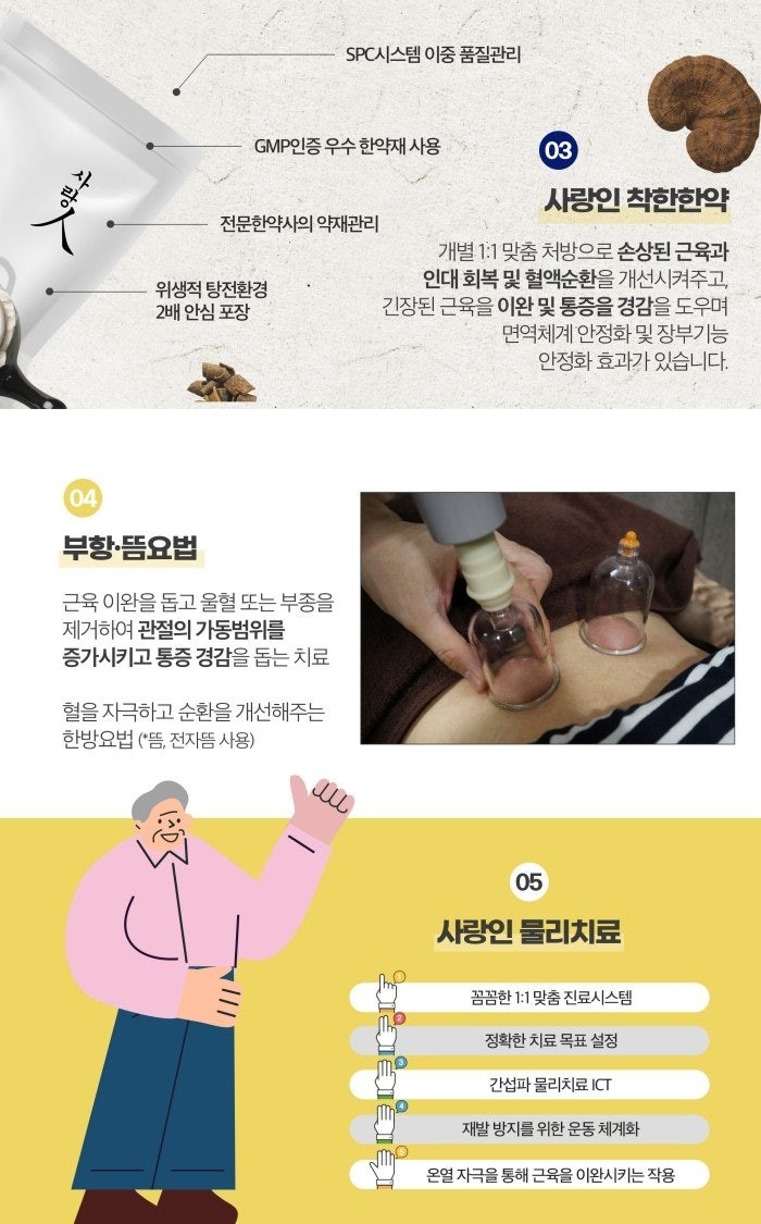 더불어 착한 한약은 환자분들 개개인에 따라 처방을 진행하고 있는데요. 손상 입은 근육과 인대 회복 그리고 혈액순환 개선, 긴장된 근육을 풀고 통증은 덜면서 면역체계 및 장부 기능 안정화에 도움을 주기도 합니다.