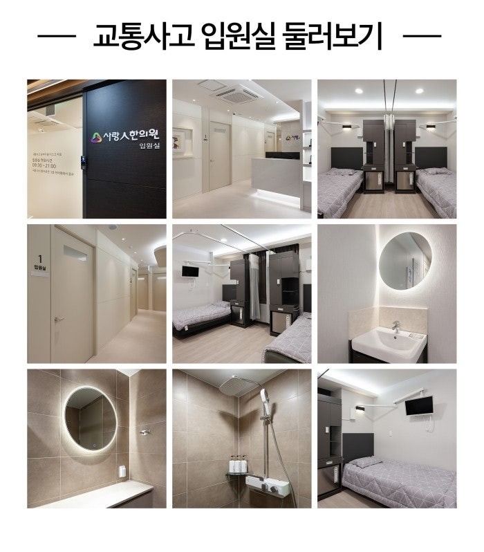 그리고 갑작스럽게 교통사고를 당해서 안산일요일한의원 알아보게 된 분들도 있으신데요. 이런 상황일 땐 본원으로 방문하여서 편할 때 통원 치료를 받고 입원 치료를 받아야 할 정도로 후유증 증상이 심한 경우 입원 치료를 받을 수도 있습니다.