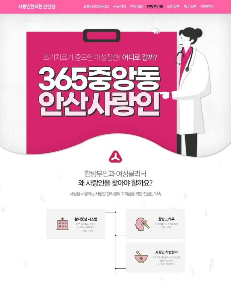 바쁜 일정으로 시간 여유가 없으신 분들을 위해서 365일 진료하고 있는데요. 환자 중심인 진료 시스템을 제공하면서 언제든 고민이 있을 때 미루지 마시고 방문을 해보세요. 더불어 수년간의 임상경험으로 한방 노하우를 통해서 재발하지 않도록 최선을 다해 진료합니다. 반복되는 통증을 겪으면 자궁 건강 회복을 위해서 하루 빨리 방문을 해보세요. 감사합니다.