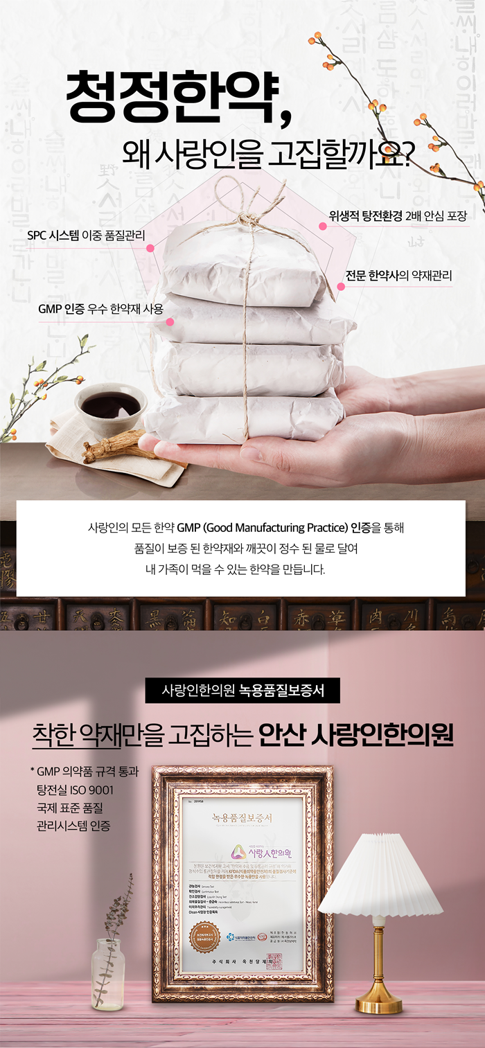환자분들의 입장에서 생각하고 최상의 의료를 제공하기 위해 최선을 다하고 있습니다. 또한, 본원에서 제공하는 모든 탕약과 환약은 엄격한 위생 기준과 품질 관리 시스템을 거쳐 조제되므로 안심하고 복용하실 수 있습니다.