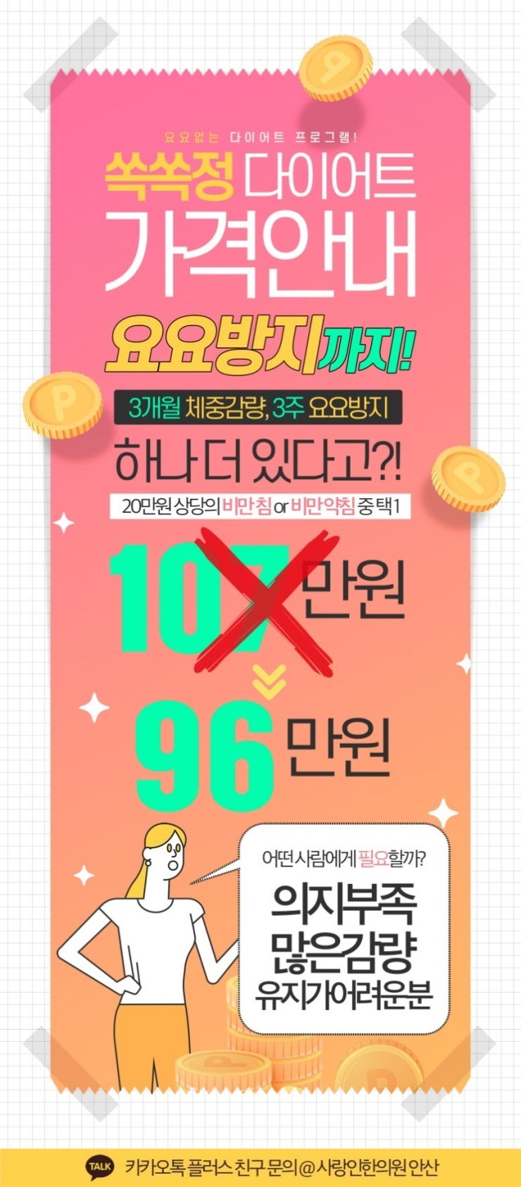 체중이 감소하게 되면서 발생할 수 있는 피부의 늘어짐이나 요요에 대한 걱정을 덜어보고 관리에 도움을 드리고 있는 저희 한의원을 통해서 한방 다이어트를 이루어보세요. 지나치게 굶고 무리하게 운동을 하지 않을 것이랍니다.