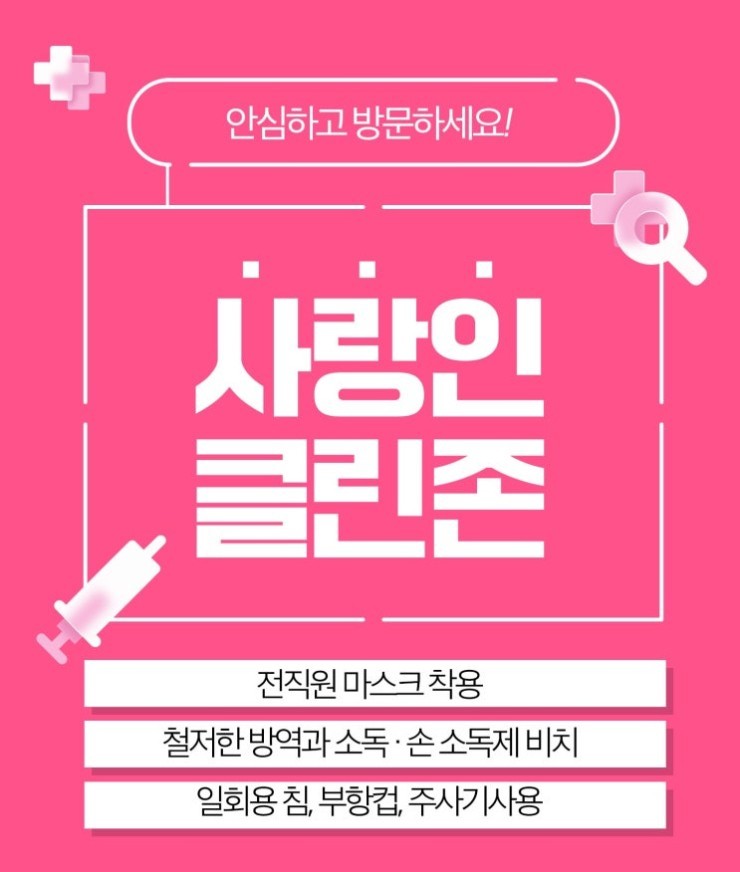 환자분들이 만족할 수 있는 결과를 경험하실 수 있도록 끝까지 책임감 갖고서 진료하고자 한답니다. 고민하는 질환이 있다면 망설이지 마시고 방문을 통해 상태에 따라 치료를 받고 건강을 지켜보세요.