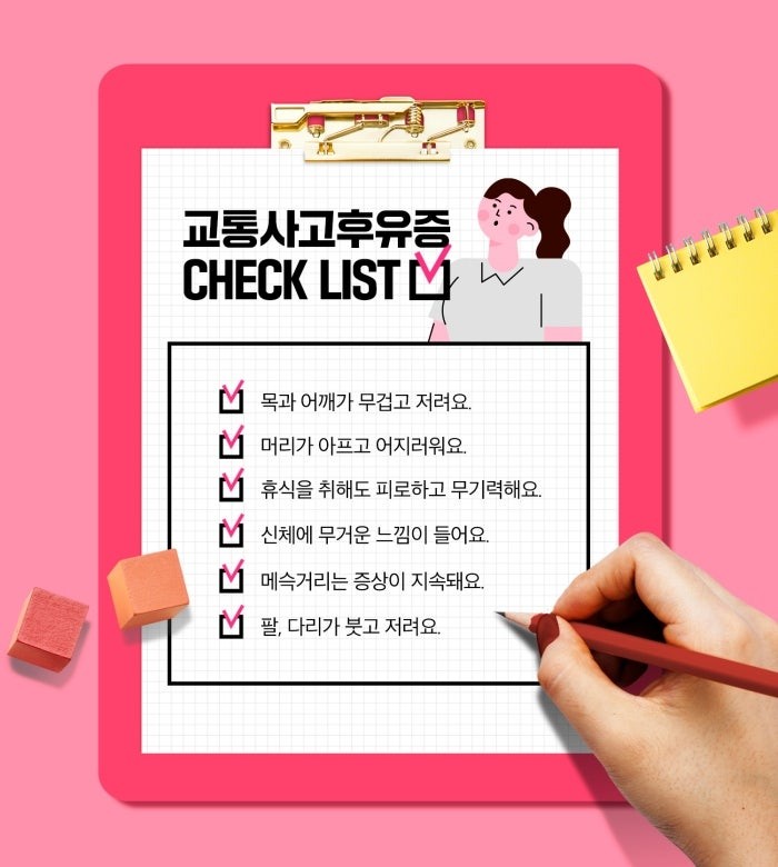 교통사고 충격 때문에 신체 이곳 저곳에 통증이 발생하거나 머리 부분으로 신경 증상이 나타나게 된 것을 교통사고 후유증이라고 할 수 있습니다. 이를 더불어 심리적인 문제도 발생시킬 수 있기 때문에 만약 교통사고 이후에 후유증을 의심하게 되었다면 저희 한의원으로 방문을 해보시는 걸 권해드려볼 수도 있는데요.