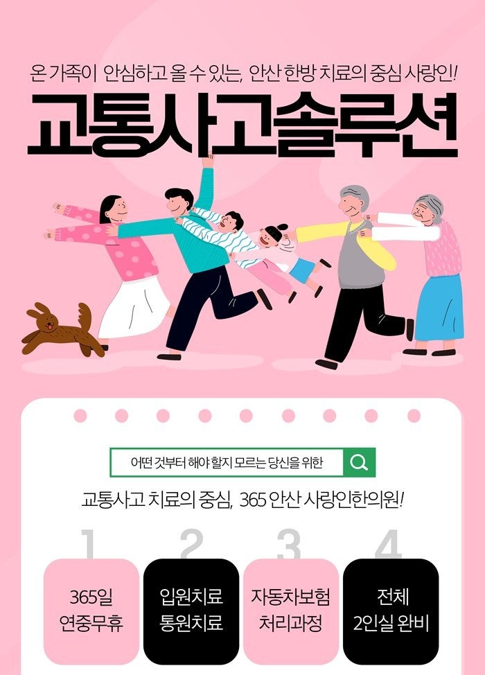 이런 상황인 경우라면 본원으로 찾아주신다면 365일 연중무휴로 진료를 진행하는 것이 가능할 수 있기에 평일에는 밤 9시까지 야간 진료를 진행할 수 있으며 주말과 공휴일에는 오후 4시 30분까지 진료를 받을 수도 있을 것입니다. 그래서 편하실 때 방문을 해보고 안산교통사고한의원 진료를 받아보는 것이 가능할 수 있답니다.