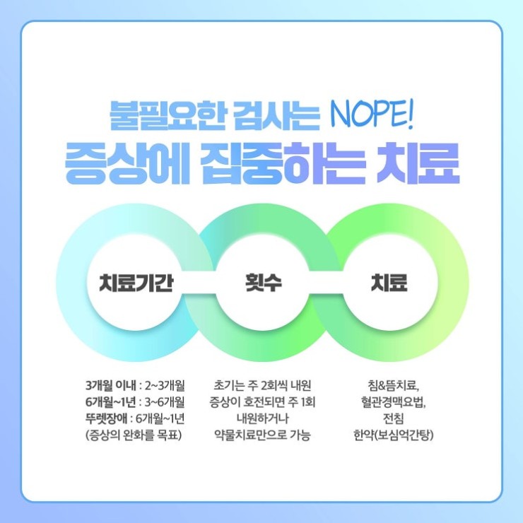 저희 한의원은 불필요한 검사는 덜고 증상에 집중하여서 치료를 진행한답니다. 심리 상담도 함께 진행하면서 보호자가 주의해야 하는 것을 안내하는데요.