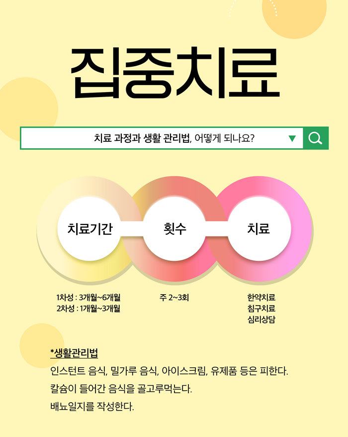 실수하더라도 괜찮다고 다독여주고 격려해 주는 긍정적인 태도가 중요합니다. 집에서의 노력에도 불구하고 증세가 지속되거나 만 5세가 지난 후에도 잦은 밤 소변 실수가 계속된다면 도움을 받는 것이 필요합니다. 고유한 체질을 면밀히 파악하여 치료 계획을 진행합니다. 정확한 진단을 통해 증상의 원인을 파악하는 것이 효과적인 치료 방법으로 이어집니다.