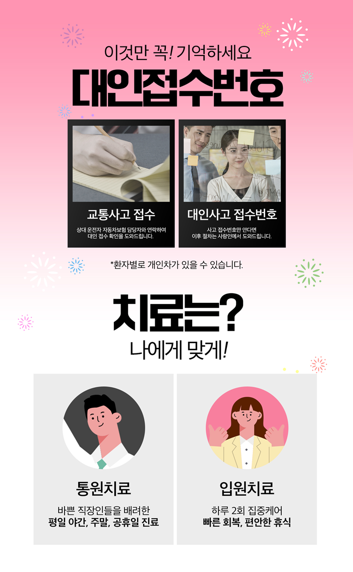 이 외에도 물리치료 등이 어혈 치료와 교통사고 후유증 관리에 활용될 수 있습니다. 교통사고 후유증으로 인한 통증은 시간이 개선해주지 않는 경우가 많습니다. 특히 어혈이 원인이라면 적극적인 안산 교통사고 한의원 치료를 통해 이를 제거하는 것이 중요합니다. 감사합니다.