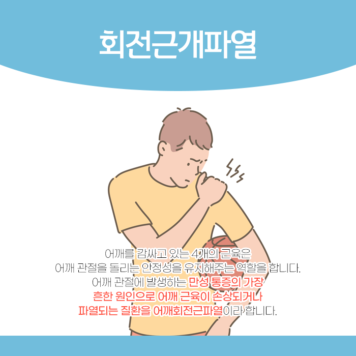 어깨에 느껴지는 통증은 일상생활에 적잖은 지장을 초래합니다. 어깨 관련 고통을 겪는 분들이 적지 않습니다. 회전근개는 어깨 주변에 위치한 네 개의 근육으로 이루어진 복합체입니다. 근육들은 어깨 관절을 감싸고 안정적으로 지탱하며 다양한 움직임을 가능하게합니다.
