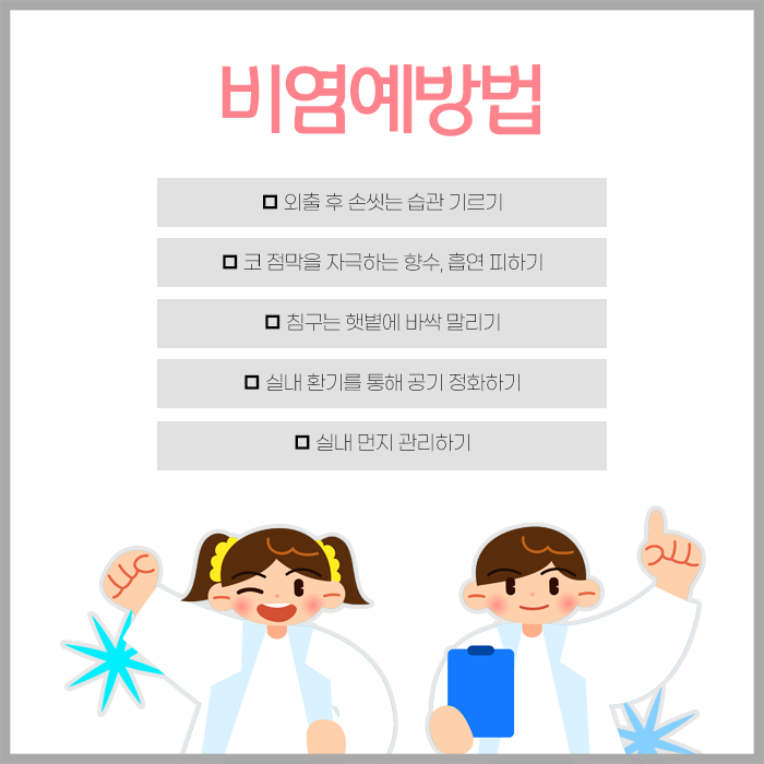 일상생활에 상당한 불편을 줄 수 있는 만성적인 코 질환입니다. 증상으로는 재채기, 투명한 콧물, 가려움, 코 막힘 등이 있습니다.