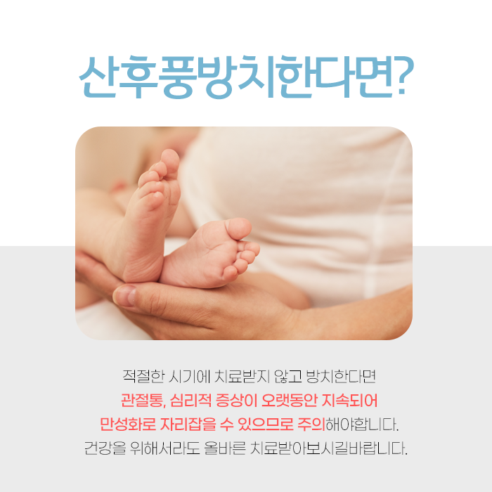 산후풍으로 나타날 수 있는 피로, 냉증, 기력이 없는 무력감, 체력 저하 등 다양한 증상까지 고려하여 눈에 보이는 통증이나 불편함을 몸 전체의 균형 회복과 건강 유지에 초점을 맞춘 관리가 이루어집니다. 산후보약을 통해 소진된 기혈을 보충하고 면역력을 강화하며 산후 우울증 예방도 합니다. 출산 후 아기와 행복한 육아 생활을 이어갈 수 있도록 도움받으시길바랍니다. 감사합니다.