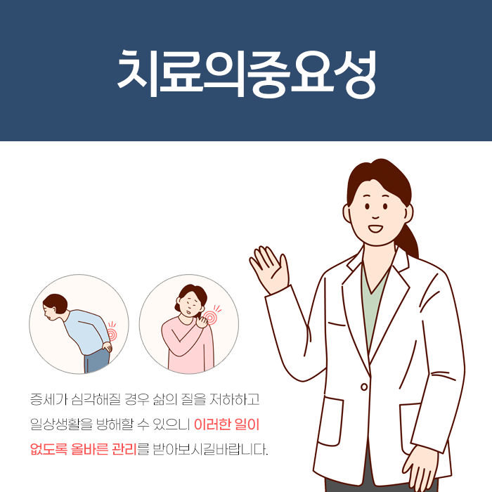 주요 증상으로는 관절 부위의 통증과 저림, 두통, 불면증 등 신경계 이상 증상도 함께 나타나는 경우가 많아 복합적으로 진행될 수 있습니다.
