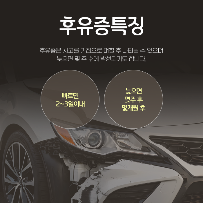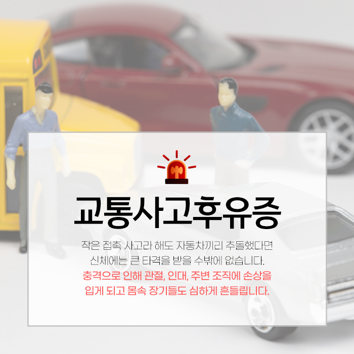 특히 사고로 인한 후유증은 속도가 붙은 차량이 신체에 가하는 순간적인 충격이 몸에 전달되면서 심각한 문제로 이어집니다.