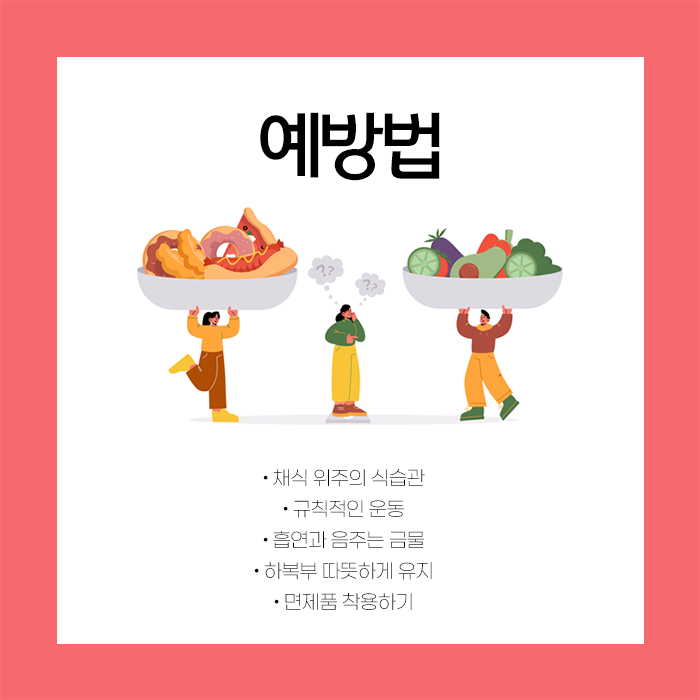 냉한 여성의 경우에는 늘 온기를 보존해야합니다. 아랫배를 따뜻하게 하거나 차가운 음식 섭취를 줄이는 등의 노력을 통해 혈액 순환을 원활하게 하고 자궁의 건강한 기능을 유지할 수 있습니다. 일상적인 패턴이 흐트러지지 않도록 식사를 일정하게 챙기는 것이 바람직합니다. 불규칙한 식사는 호르몬 균형을 깨뜨리고 소화 기능을 저하시켜 건강에 악영향을 미칠 수 있습니다. 감사합니다.