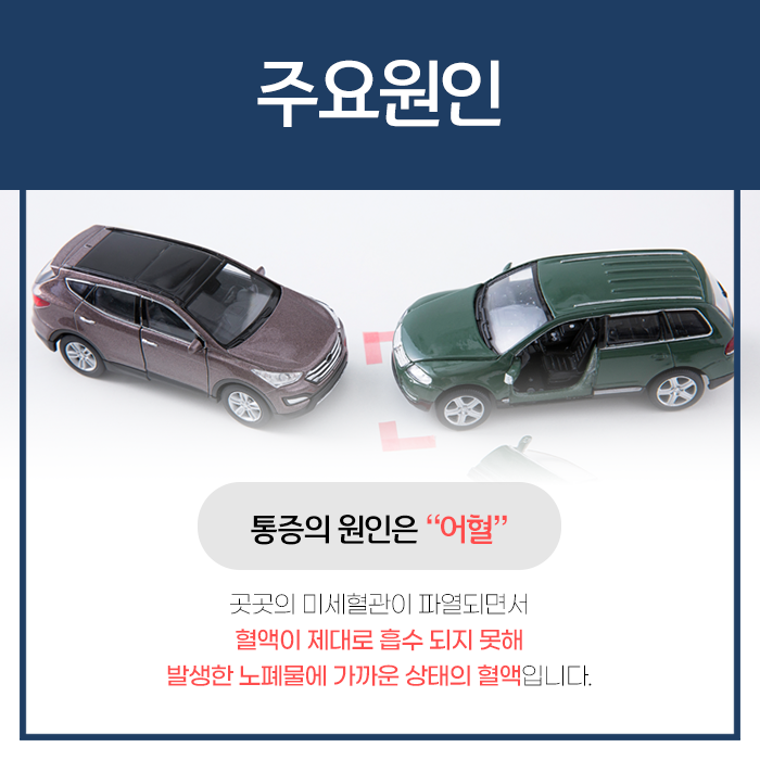 회복에 오랜 기간이 필요하게 되므로 어떤 유형의 사고든 초기에 안산입원한의원 치료받으시기를 바랍니다. 어혈은 멍과는 다릅니다. 사고 당시의 충격으로 혈관 밖으로 새어 나온 피가 몸속 특정 부위에서 뭉쳐 피덩이를 형성하게 됩니다. 혈액이 순조롭게 움직이지 못하며 한곳에 정체되는 상황을 일컫습니다.