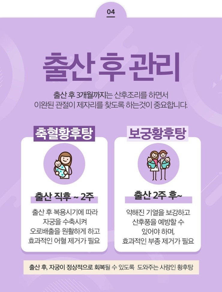 충분한 몸조리와 올바르게 몸조리를 해주지 못하고 있는 분들이 산후풍이 생기지 않도록 저희 한의원에서 예방을 이루는데 도움을 드릴 것인데요. 본원은 시기에 따라 그에 대한 산후 한약 및 산후조리를 진행할 수 있도록 안내하고 더욱 세세한 계획이 필요하신 분들이라면 저희와 함께 해보시길 바라겠습니다.