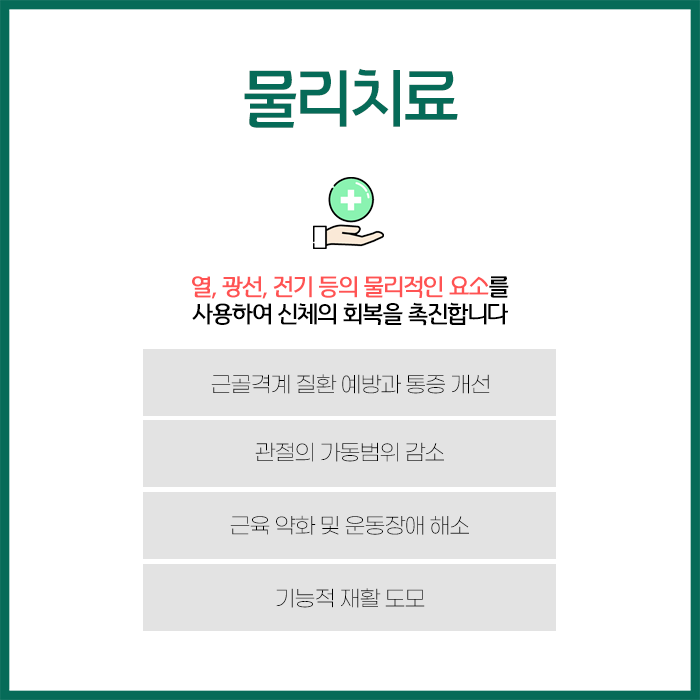 안산 교통사고 물리치료에는 다양한 방법들이 유기적으로 결합되어 적용됩니다. 따뜻한 열을 이용하여 혈액 순환을 촉진하고 미세한 전류를 이용하여 근육을 자극하여 위축을 막으며 회복을 돕습니다.
