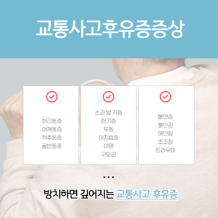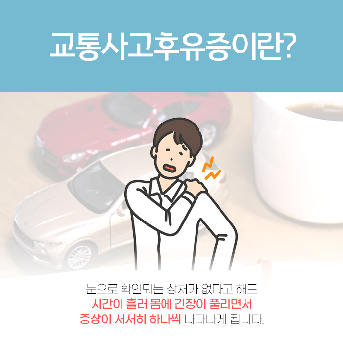 눈에 보이는 외상이 없더라도 교통사고 후 신체에 이상 징후가 조금이라도 느껴진다면 망설이지 말고 치료하는 것이 필요합니다.